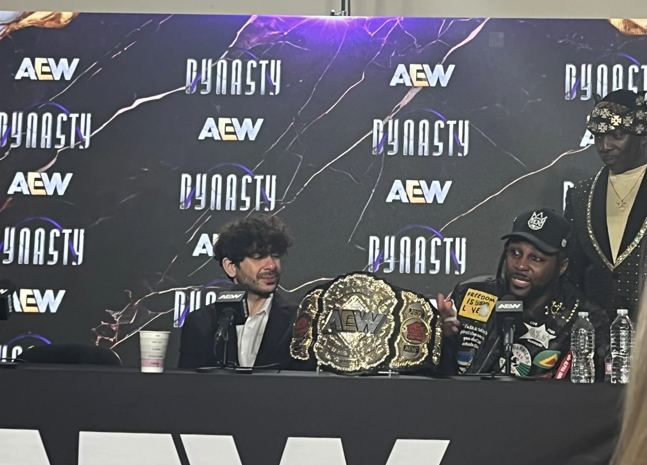 After a few moments, they brought out Tony Khan and then the first talent, the new AEW world champion, Swerve Strickland. Unfortunately, I didn't get a chance to ask him a question even though I had my hand up, but it's probably for the best that I was able to sit back and observe the way the others were formulating their questions and gauge the reactions that the wrestler was having to aid questions. As a result, that part of the scrum felt like it passed in the blink of an eye.